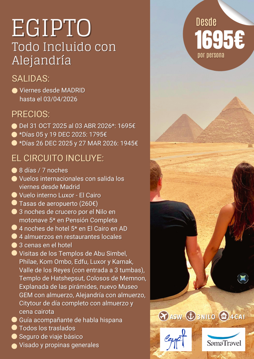 "EGIPTO Todo Incluido + Alejandría" 8 días circuito [Desde Madrid] (01Nov25-31Oct26) **Desde 1695€**