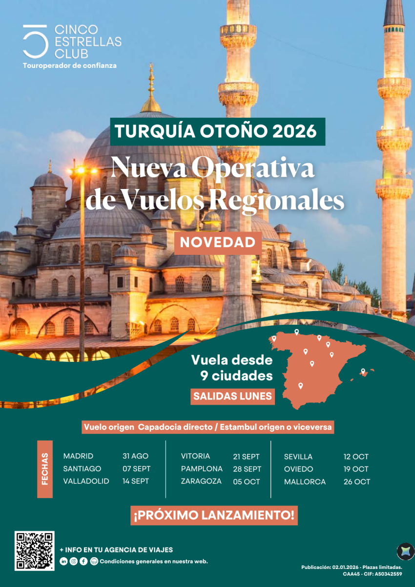 Avance operativa Vuelos Regionales Turquía Otoño'26 sal:dsd 9 ciudades:Scq,Ovd,Pna,Vit,Zaz,Vll, Mad,Scq,Pmi